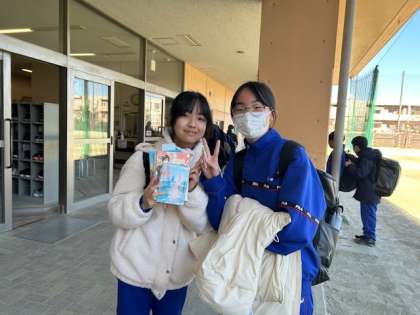 一年生の下校時はみんなジャージ姿、どのクラスも今日は体育がありました。持ち帰る本がたくさんの女子、冬休みに読んだら、感想を教えてくださいね。明日は終業式です。元気な顔で、会いましょう。