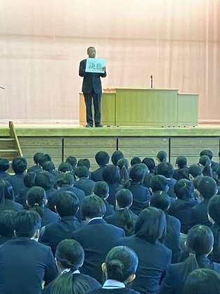 校長先生から決意と覚悟の宿題がだされました。冬休み、一人一人が考えてみてください。