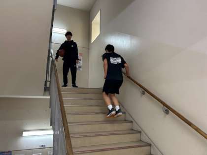 筋トレや外周などの地道なメニューもこなす男子・女子バスケットボール部、朝から元気に活動していました。今年も更なる向上が期待できますね。頑張ってください!