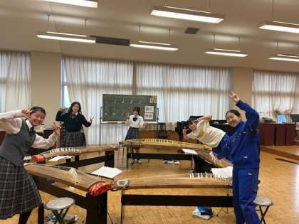日本文化部、笑顔で箏を囲んでいました。4月の新入生歓迎会でお披露目する新しい曲に挑戦しているようです。よく知っているJ-POPも楽器が変わると、新鮮な響きに感じます。本番に向けて、頑張って!