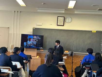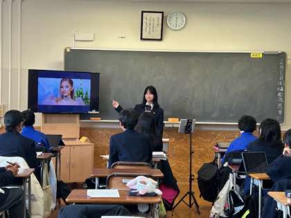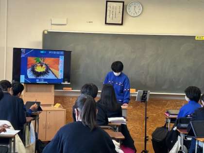 1年生の英語では、自分が大好きなアニメのキャラクターや、尊敬する人物について、英語とスライドを使ってプレゼンテーションをしました。1Eでは、大好きなお父さん、クラスメイト、漫画家やゲームクリエイター、はたまた自分が作ったキャラクターなどなど、大好きな思いがみんなから伝わってくるとても楽しい発表でした。ジェスチャーやアイコンタクトなども使えるようになってきて、発表そのものも上達していましたね!