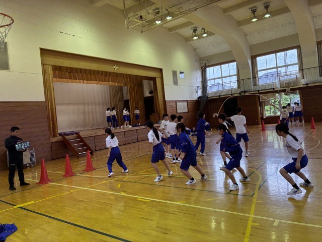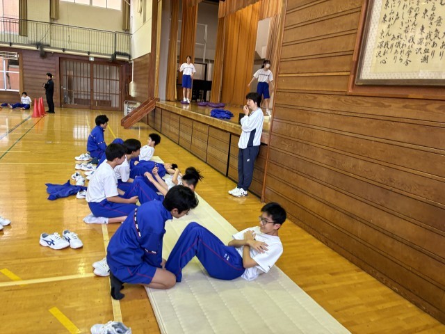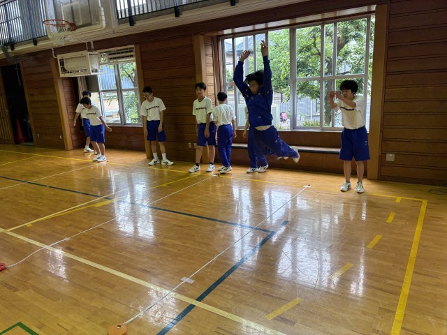 連休前最後の体育は雨天でしたので、サーキットトレーニングを行いました。