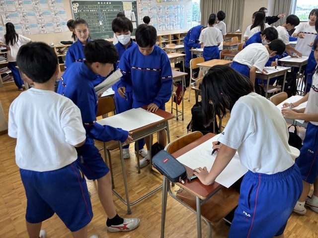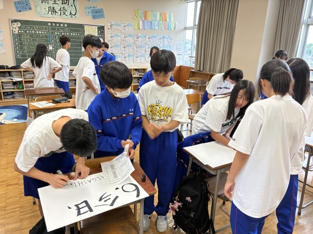 学級委員が、体育祭に向けてプラカードの表示を作成しています。