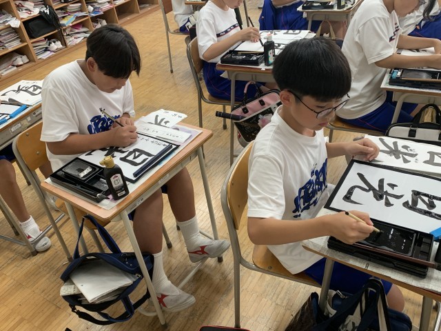 みんな集中して書いており、書き初めの頃よりも格段に上達していました。