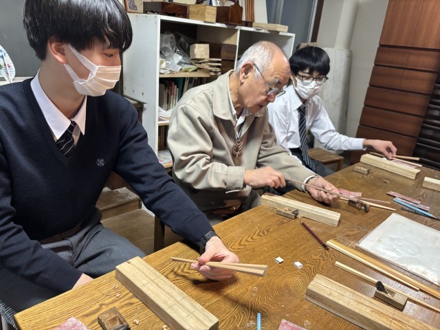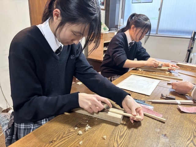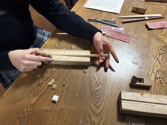 職人さんに教わりながら、真剣に木を削っていました🌳