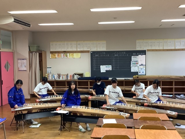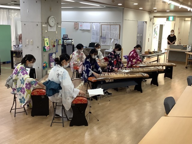 みんなで教え合いながら浴衣を着て、「浜辺の歌」や一足早く「虫の声」などを演奏し少しでも涼しさを感じてもらえればと頑張りました!