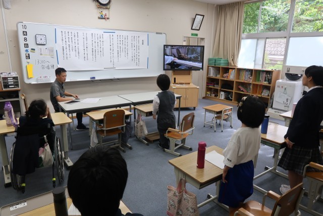 I組の生徒たちは、全校学活にオンラインで参加しました。