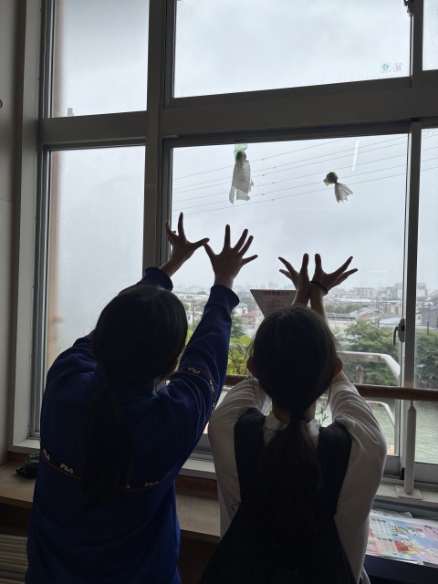 2年D組にてるてる坊主がたくさんいました!