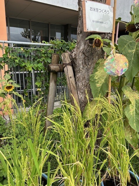 今年度、理科教員、事務さん、主事さんが中心となり、お米づくり、魚やミジンコ、カブトムシの飼育活動を進めています。お米はやっと穂が実ってきました。ご来校の際、ご覧ください。