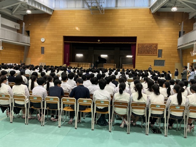平和資料館による、中学校巡回展が本校で開催中です。未来の平和のためにこの展示を見て、一人一人が考える機会になることを願います。