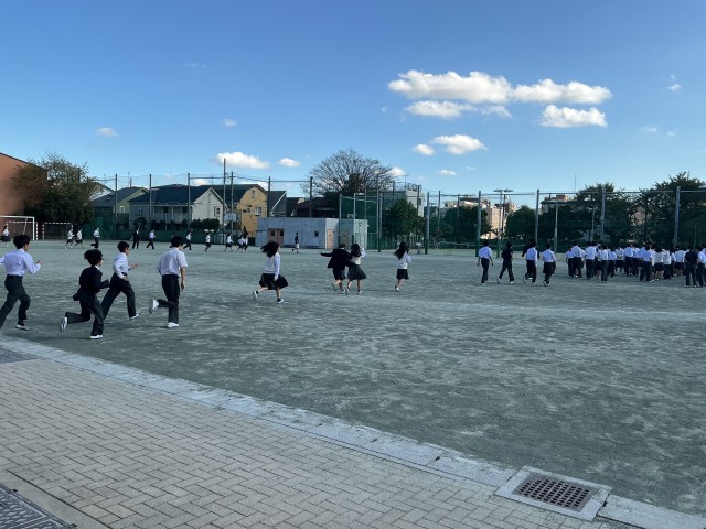 全体学活後、体育館からの避難訓練を実施しました。