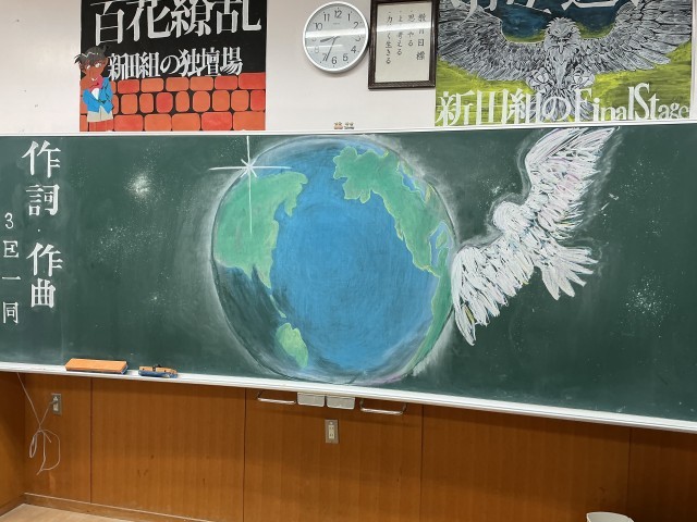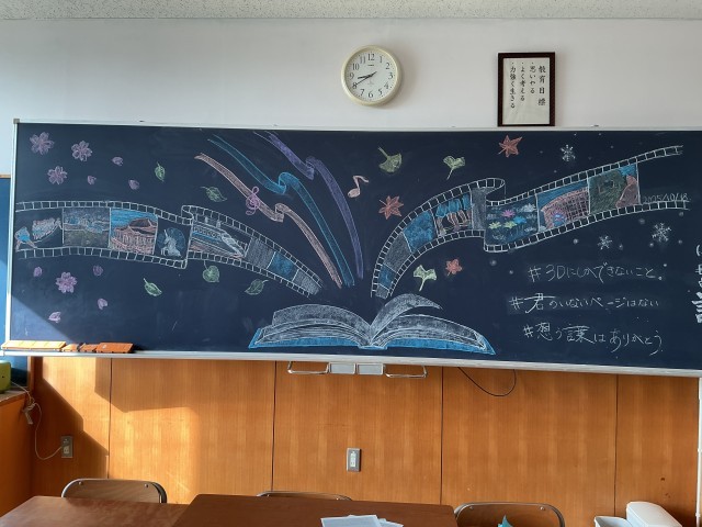 黒板アートの様子。各クラス思いが込められていました。
