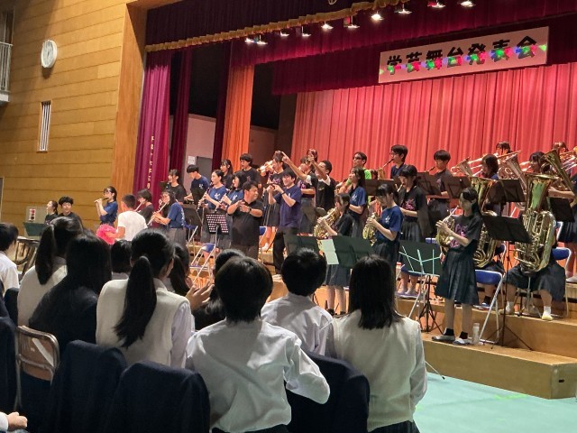 吹奏楽部は都のコンクールで金賞、演劇部は昨年度に続き都大会出場を目指す実力があり、素晴らしい発表でした。吹奏楽部の最後の曲では先生たちも飛び入り参加で盛り上がりました。