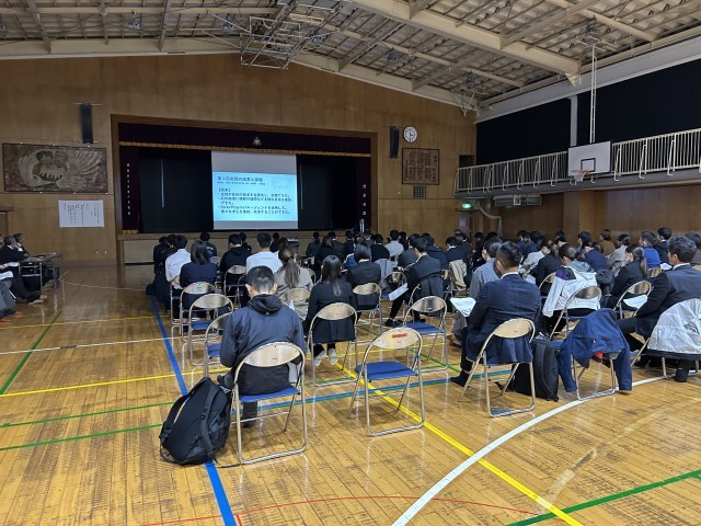 最後は体育館で全体学活です。