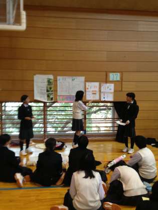 10月10日〈木〉、本日、7月に行われた2年生の職場体験の全体発表会が行われました。堂々と発表している人、少し恥ずかしそうに発表する人、さまざまでしたが、発表力が着実に身につきました。