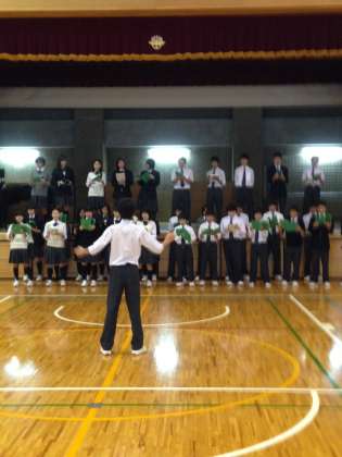 朝練(8:15〜8:45)が、始まっています。写真は、体育館で練習する2年生。