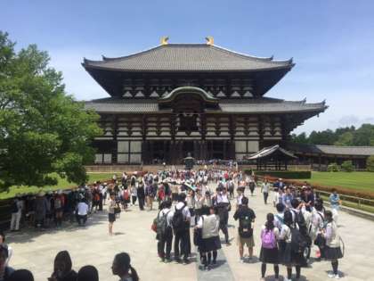 奈良公園、晴天。東大寺をスタートに班行動が始まりました。