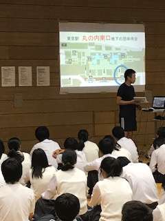 明日から修学旅行です。各係の代表生徒から注意事項を説明後、スライドを使って最後の確認を行いました。
