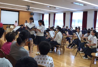 今月4日に吹奏楽部がコンクールに出場します。今日、当日直接聴きに行かれない保護者の方にリバーサルも兼ねて演奏を披露いたしました。