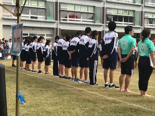 ボランティア部が烏山北小学校運動会の手伝いに行っています。暑くなりそうです。