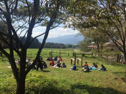 大自然の中でお弁当。何だかいつもより会話も弾みます。