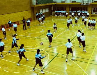 烏山中より広い体育館で思いっきり体を動かしました。分かりづらいですがドッヂボールで盛り上がっています。