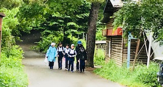続々と紅葉台のチェックポイントに生徒が集まってきました。昼食をとりながら30分休憩して出発します。最初の班は12時35分に出発です。