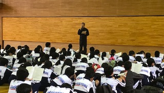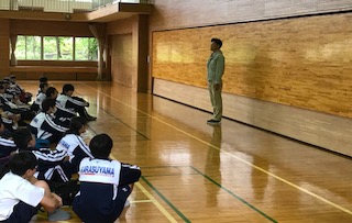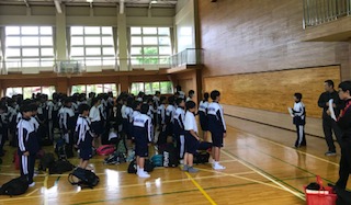 学園の体育館を借りて、入園式です。お世話になる学園の方、看護師さん、写真屋さんからお話をいただきました。皆が3日間気持ちよく過ごせるように、気を配りながら過ごせることを期待しています。