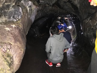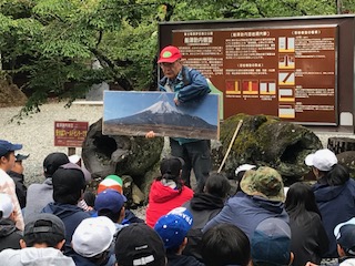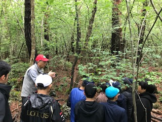 ガイドさんに説明していただいてから森に入り、溶岩樹型や溶岩洞窟の観察をしました。