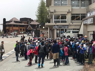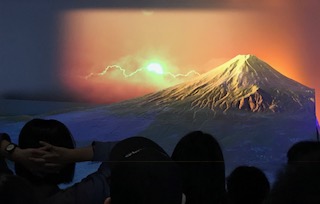 富士山ミュージアムのプロジェクションマッピングを見た後、これから御中道の散策です。雨はまだ降っていません。何とかもちそうです。