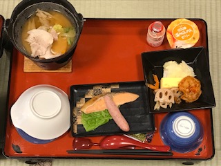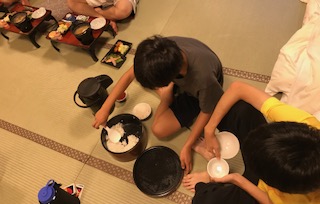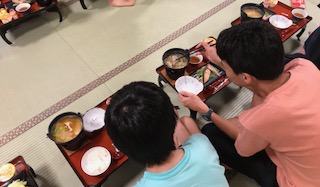 朝食も部屋食です。おかわりをする生徒も沢山います。