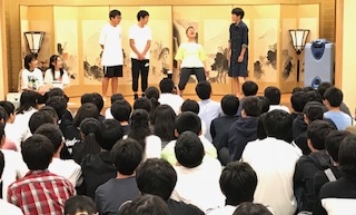 係生徒が準備してきてきたレク大会です。修学旅行最後の夜を、先生のモノマネ、一発芸など、みんなで楽しみました。
