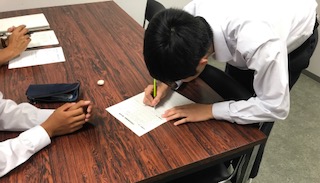 二学期が始まったばかりですが、もう3年生から2年生へのバトンが渡る準備が始まっています。今日選挙の立候補受付がありました。写真では様子が伝わりにくいですが、立候補受付の様子です。烏山中をさらにいい学校に変えて行くために頑張って欲しいと思います。