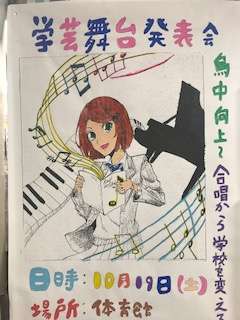大きく拡大されたポスター(?)が情報学習室前に貼られています!いよいよ合唱祭らしくなってきました。綺麗なハーモニーも聞こえています。