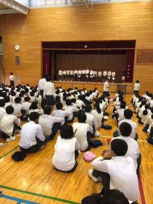 夏の総体、区陸、部活動等で、頑張った人たちに表彰をしました。