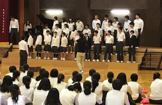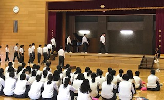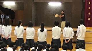 2年生は5時間目に学年練習です。歌の練習だけでなく、入退場の練習も行いました。