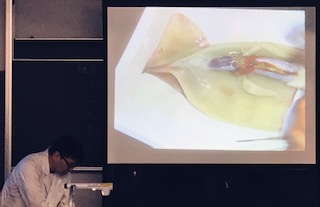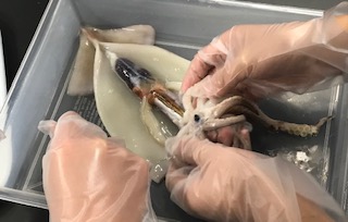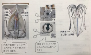 今日はイカの解剖です。日頃ご家庭でも調理する食材ですが、キャーキャーと声を出して解剖していました。