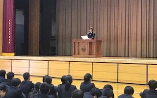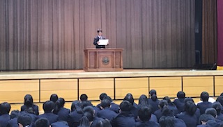 国語の時間に意見文を書き上げ、各学級から選ばれた代表者が体育館の舞台を使い、学年の仲間の前で自分の意見を発表しました。皆、緊張はしているようでしたが堂々と発表ができていました。