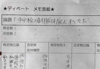 国語の授業で2年生はディベートを行いました。自分たちの考えを、論理的に筋道立て説明していきます。しかし、これからはこれだけでは不十分な世の中に変わっていきます。初めて出会った人と、意見を出し合い協力して、皆が納得できる、合意できる解決策を見出せる力が求められるようになります。ディベートはそのための一つの段階と考えられます。