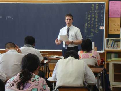 (写真上)3年生ジェイソン先生の英語の授業。