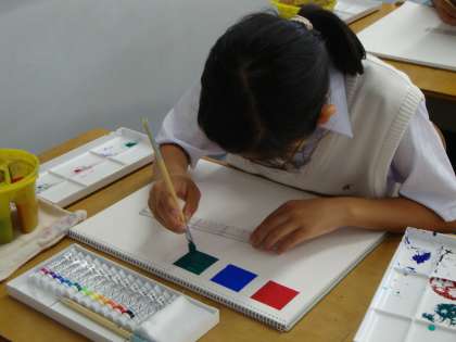 (写真中)1年生美術の授業。