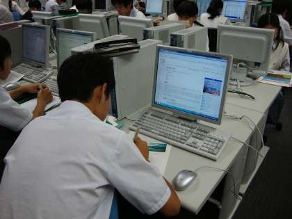 【写真右】理科の授業でインターネットを使った調べ学習