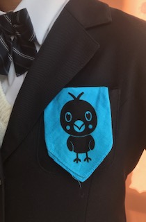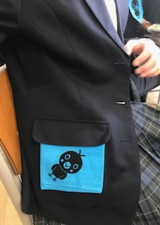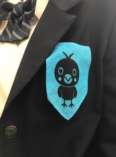今週は挨拶キャンペーンを実施しています。生徒は胸ポケットにカラぴょんがついた青いハンカチを入れて、このキャンペーンに賛同していることを表明しています。たまに、違うポケットに入れている生徒もいます。