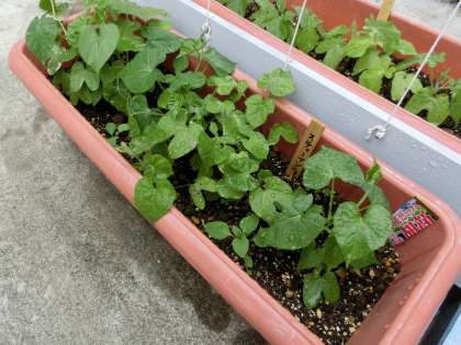 梅雨の間に、どんどんツルを伸ばして、立派なカーテンになって欲しいです。(整美委員会)