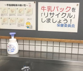 答えは6枚だそうです。区内の小中学校の給食で昨年から牛乳がビンから紙パックに代わり、整美委員会が中心になって烏山中学校でもリサイクルを行っています。