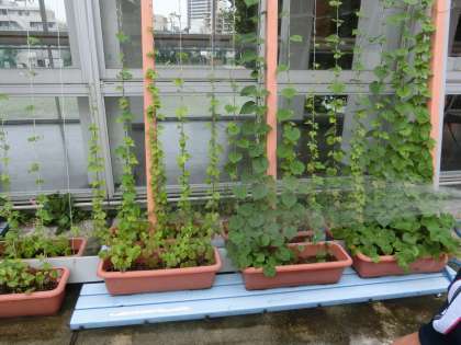 整美委員会 「グリーンカーテン」 カーテンになってきました。