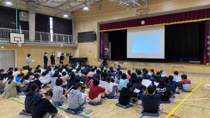 学舎の小学校6年生に.中学校を知ってもらうため、生徒会役員は学校生活や生徒会のこと、部活動について等、動画を作成して、小学校を訪問しました。