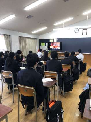 体育館と教室でオンラインに分かれ、3学期始業式を行いました。