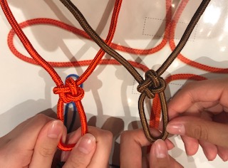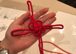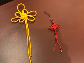 房紐体験 数学的な感性が必要な体験でした。太い紐で練習して、細い紐でストラップ式のお守りを作りました。