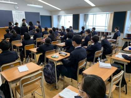 昨日の入学式を終え、今日から全学年そろってのスタートです。1年生は緊張した面持ちで担任の話を真剣に聞いています。2・3年生は穏やかな雰囲気の中、新たなクラスでのスタートを切りました。